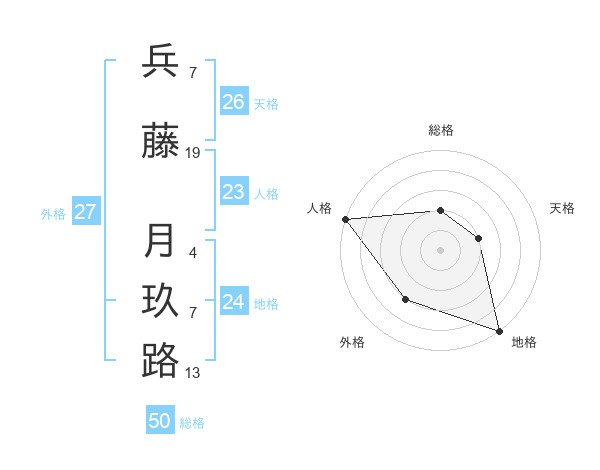 兵藤 月玖路さんの総格は50画の2点!