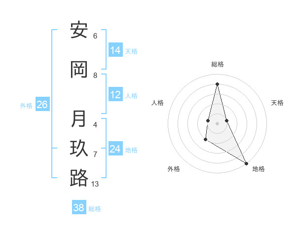 安岡 月玖路さんを姓名の画数から五運を鑑定