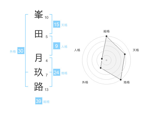 峯田 月玖路さんを姓名の画数から五運を鑑定