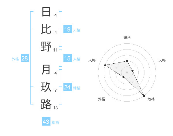 日比野 月玖路さんを姓名の画数から五運を鑑定
