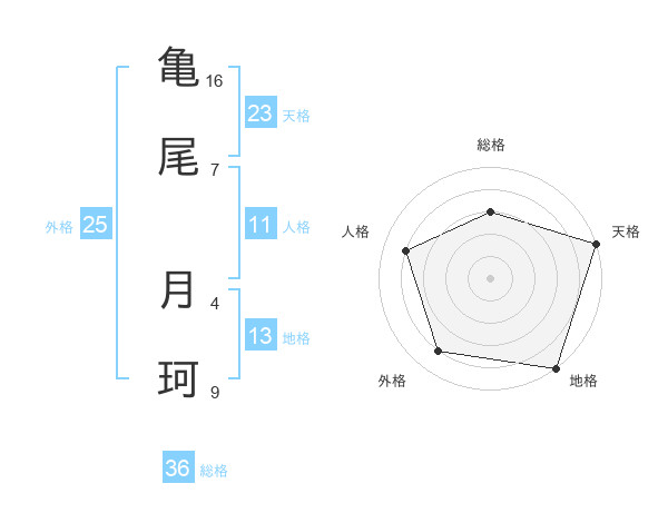 亀尾 月珂さんを姓名の画数から五運を鑑定