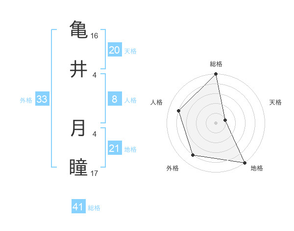 亀井 月瞳さんを姓名の画数から五運を鑑定