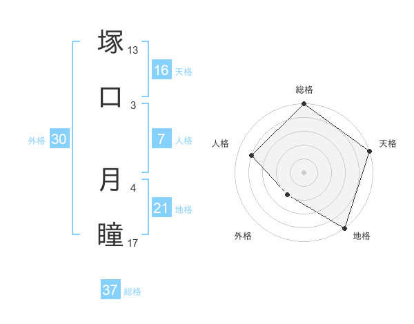 塚口 月瞳さんの総格は37画の5点!