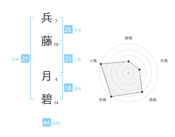 兵藤 月碧さんを姓名の画数から五運を鑑定