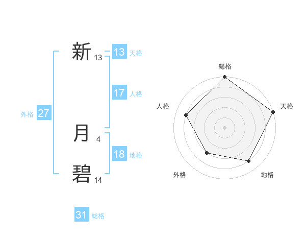 新 月碧さんの総格は31画の5点!
