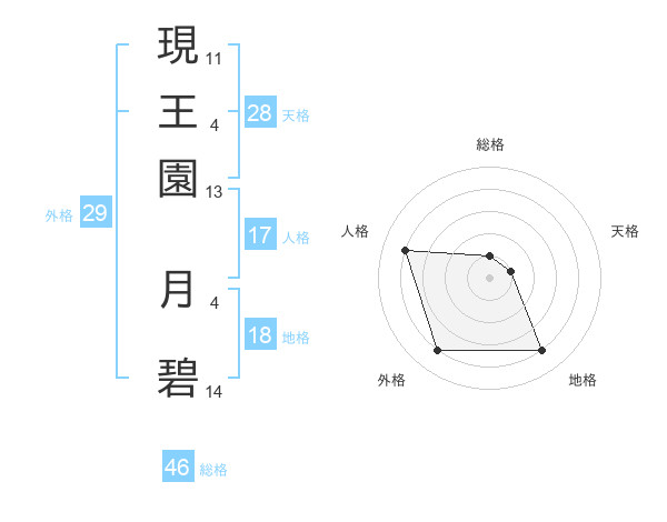 現王園 月碧さんを姓名の画数から五運を鑑定