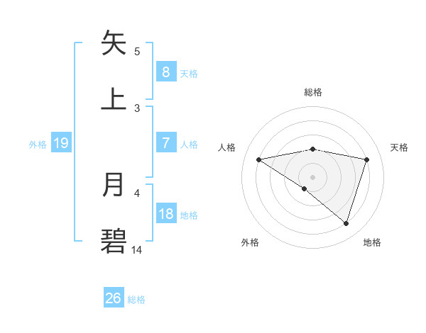 矢上 月碧さんを姓名の画数から五運を鑑定
