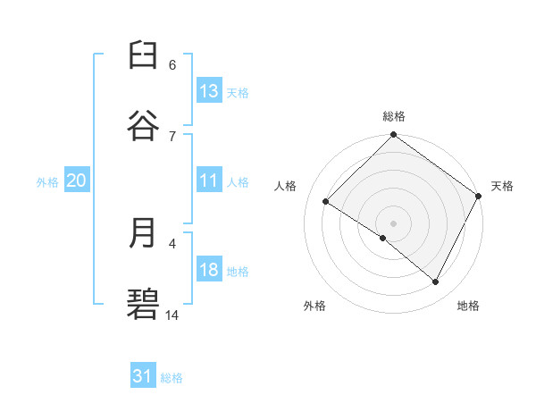 臼谷 月碧さんを姓名の画数から五運を鑑定