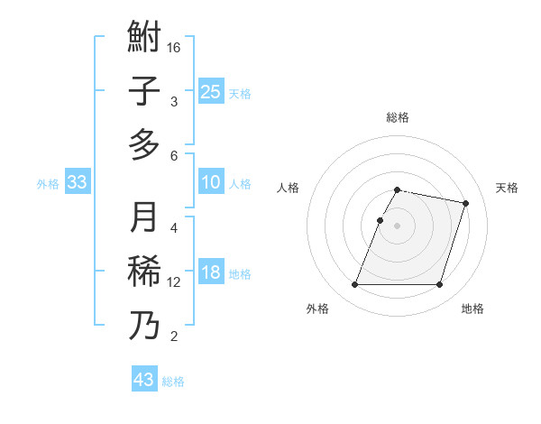 鮒子多 月稀乃さんを姓名の画数から五運を鑑定