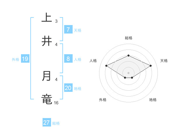家系が持つ宿命的な運勢を表します。祖先から受け継いだ苗字ですので自分の力が及びません。家柄を象徴します。