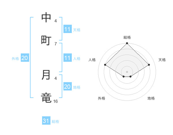 中町 月竜さんの地格は20画の1点!