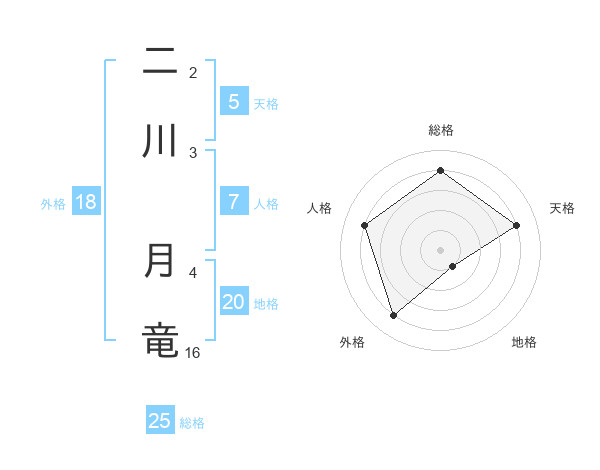 二川 月竜さんの総格は25画の4点!