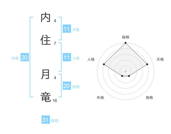 内住 月竜さんの総格は31画の5点!