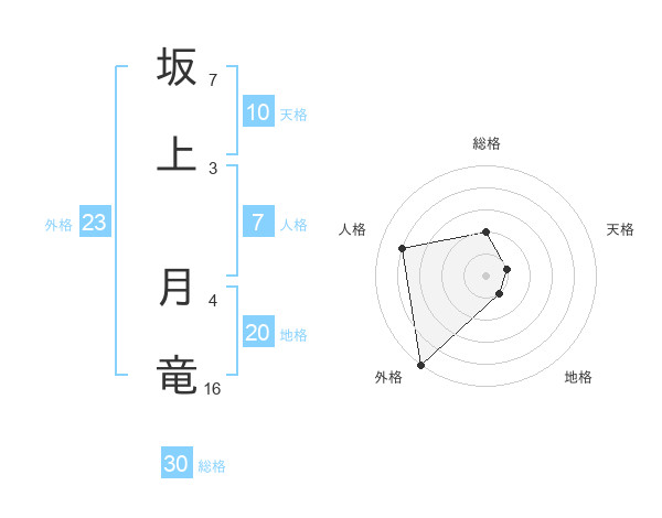 坂上 月竜さんを姓名の画数から五運を鑑定