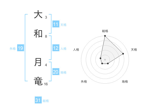大和 月竜さんの総格は31画の5点!