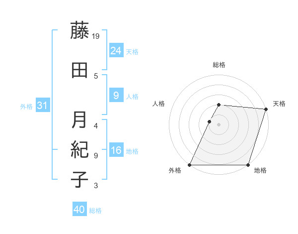 藤田 月紀子さんを姓名の画数から五運を鑑定