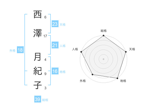西澤 月紀子さんの総格は39画の5点!