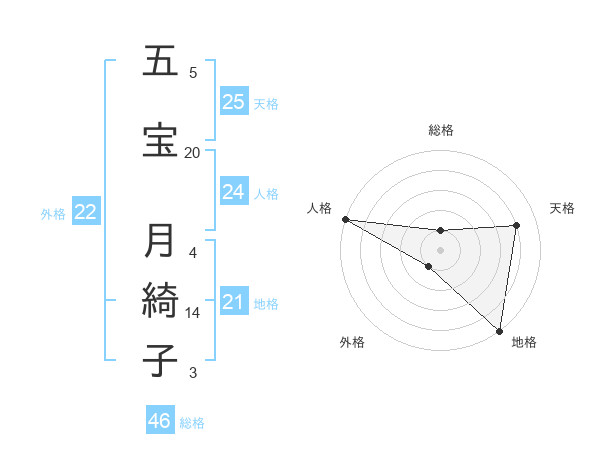 五宝 月綺子さんの外格は22画の1点!