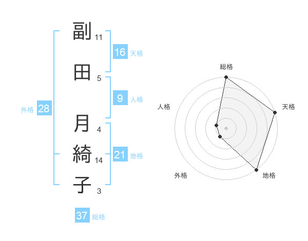 副田 月綺子さんを姓名の画数から五運を鑑定
