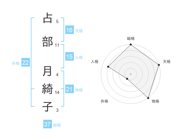 占部 月綺子さんを姓名の画数から五運を鑑定