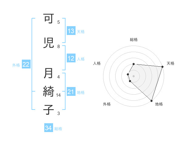可児 月綺子さんを姓名の画数から五運を鑑定