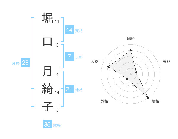 堀口 月綺子さんの地格は21画の5点!