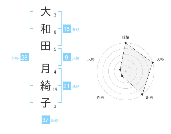 大和田 月綺子さんを姓名の画数から五運を鑑定