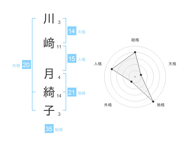 川﨑 月綺子さんを姓名の画数から五運を鑑定
