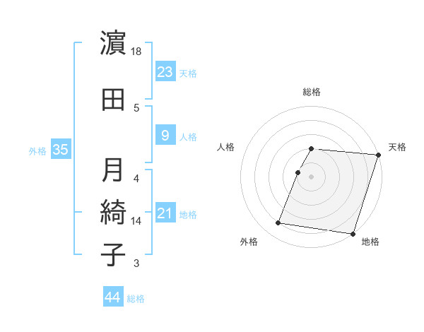 濵田 月綺子さんを姓名の画数から五運を鑑定