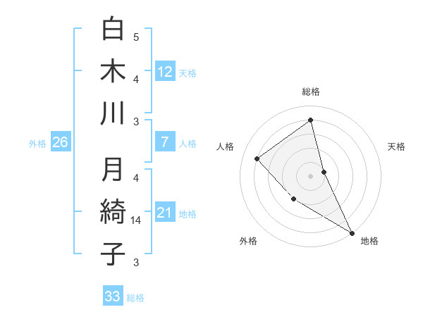 白木川 月綺子さんを姓名の画数から五運を鑑定