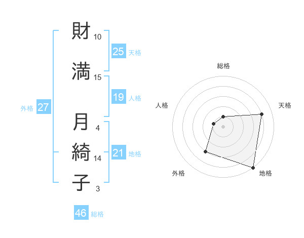 財満 月綺子さんの天格は25画の4点!