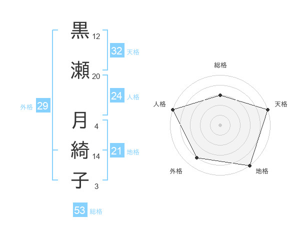 黒瀬 月綺子さんを姓名の画数から五運を鑑定