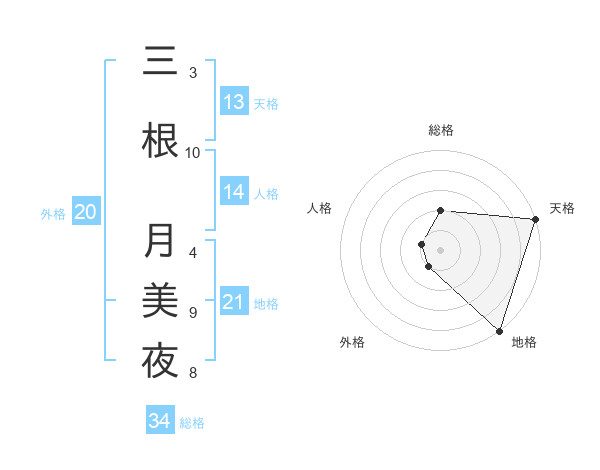 三根 月美夜さんを姓名の画数から五運を鑑定
