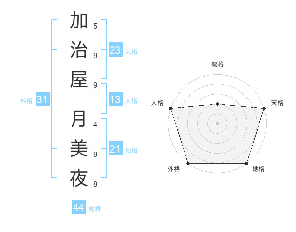 加治屋 月美夜さんを姓名の画数から五運を鑑定