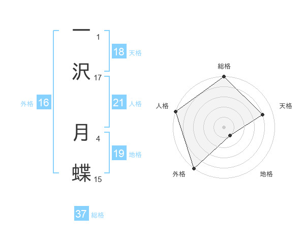 一沢 月蝶さんを姓名の画数から五運を鑑定