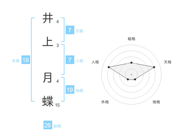 井上 月蝶さんを姓名の画数から五運を鑑定