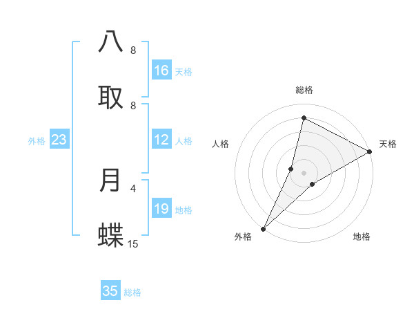 八取 月蝶さんの外格は23画の5点!