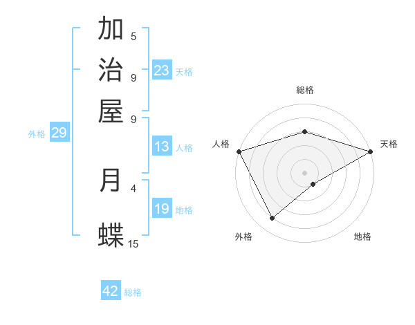 加治屋 月蝶さんを姓名の画数から五運を鑑定