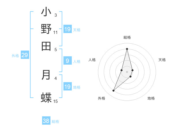 小野田 月蝶さんの総格は38画の4点!
