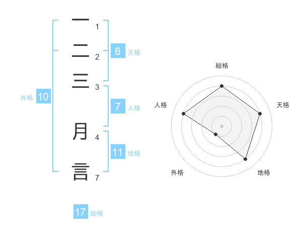 一二三 月言さんの総格は17画の4点!