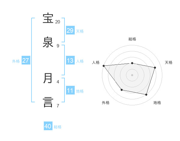 宝泉 月言さんの天格は29画の4点!