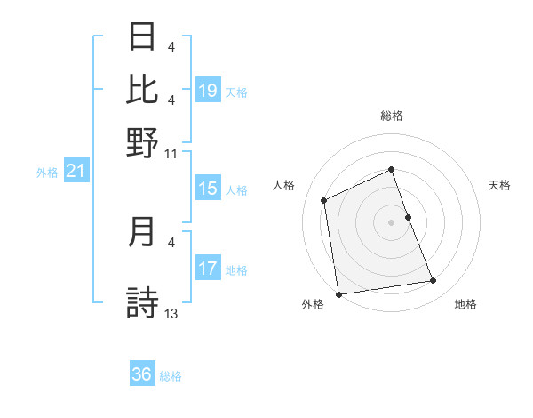 日比野 月詩さんを姓名の画数から五運を鑑定