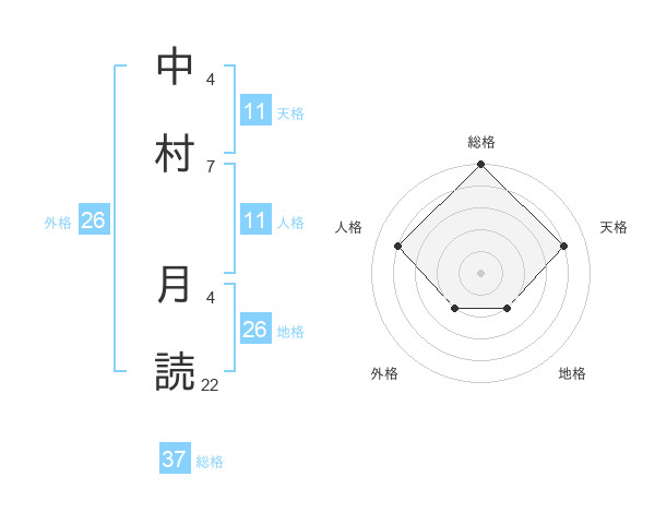 中村 月読さんの総格は37画の5点!