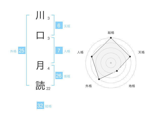 川口 月読さんの外格は25画の4点!