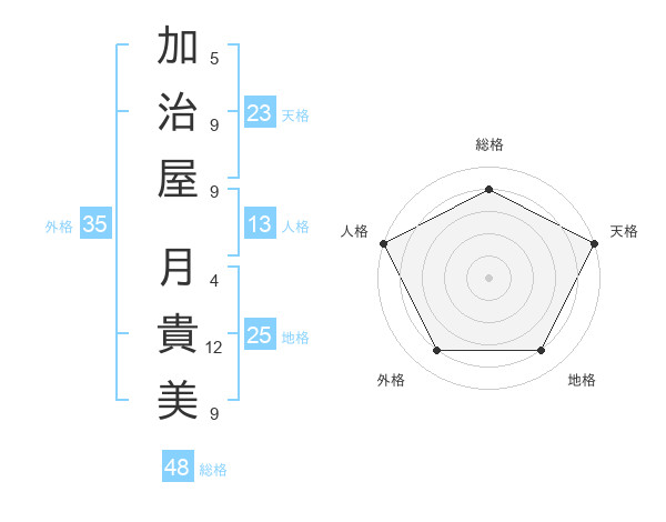 加治屋 月貴美さんを姓名の画数から五運を鑑定
