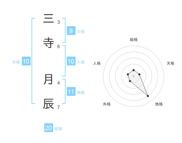 三寺 月辰さんを姓名の画数から五運を鑑定
