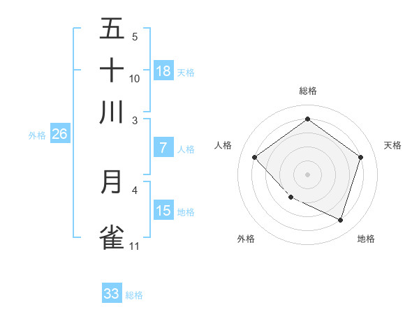 五十川 月雀さんを姓名の画数から五運を鑑定