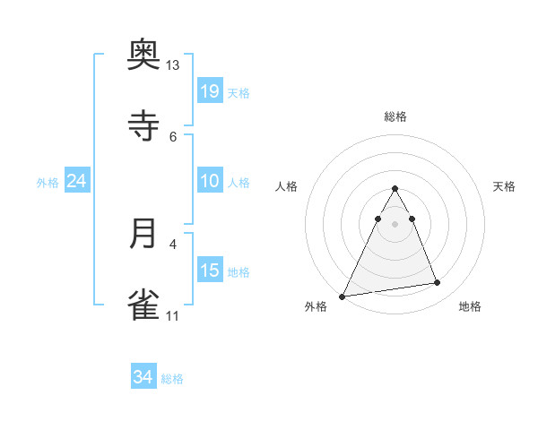 奥寺 月雀さんの総格は34画の2点!
