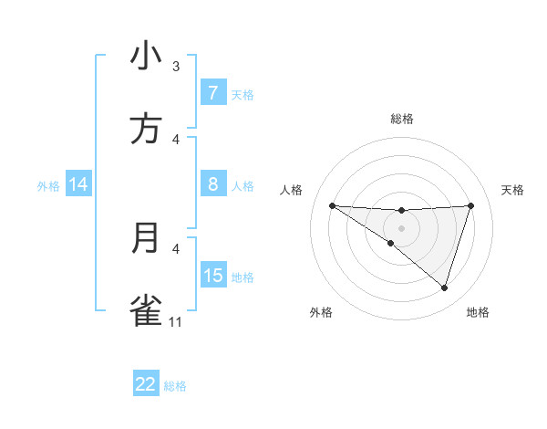 本サイトの鑑定結果の正当性は保証しません。鑑定結果は参考程度にお読みください。実際の名づけにご利用される場合は、姓名判断についてご自身でよくお調べください。