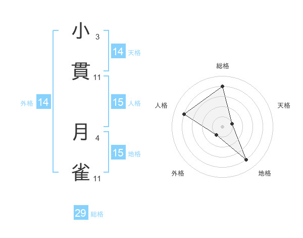 小貫 月雀さんを姓名の画数から五運を鑑定
